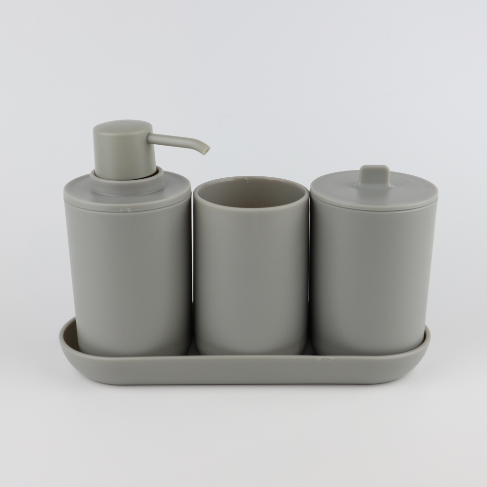 Set van 4: schaal, zeeppomp,tandenborstelhouder en wattenhouder