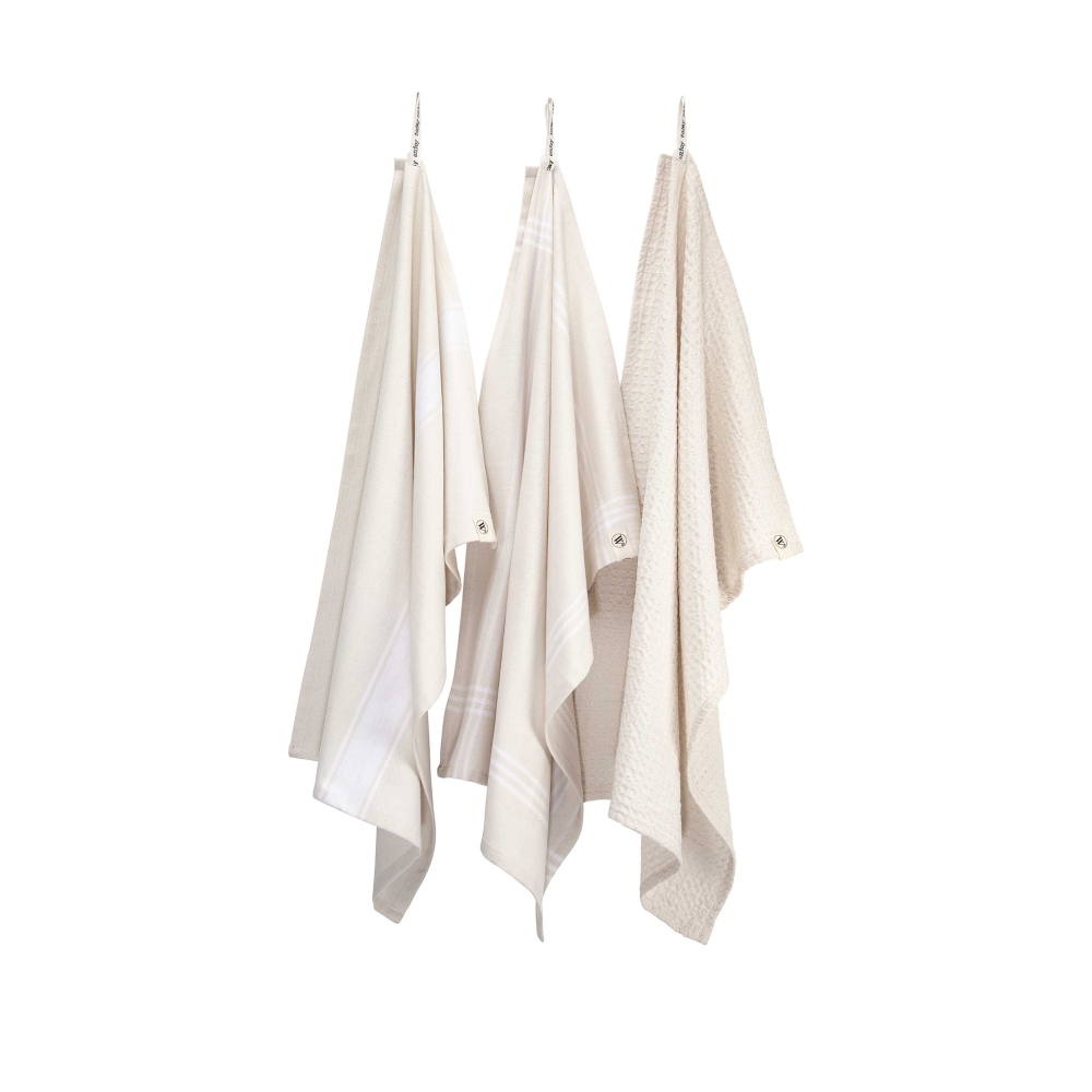 1x keukendoek Blocks, 1x theedoek Dry Up en 1x theedoek Line Out